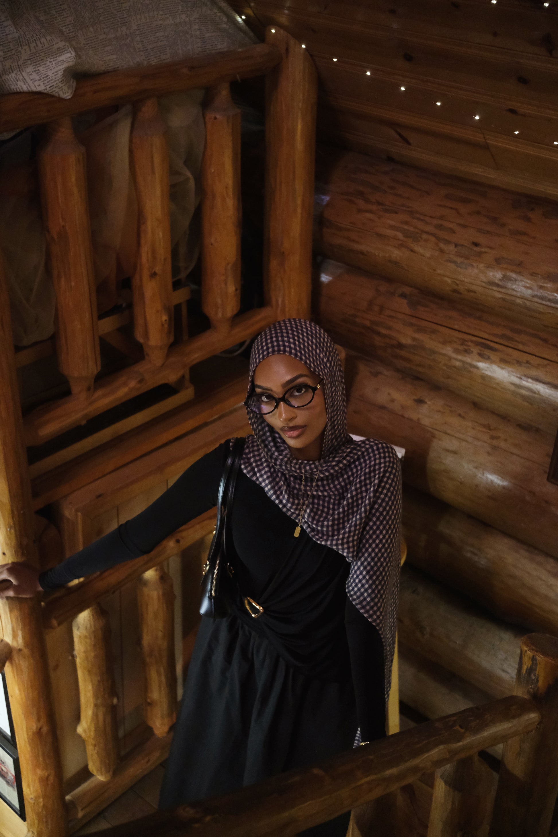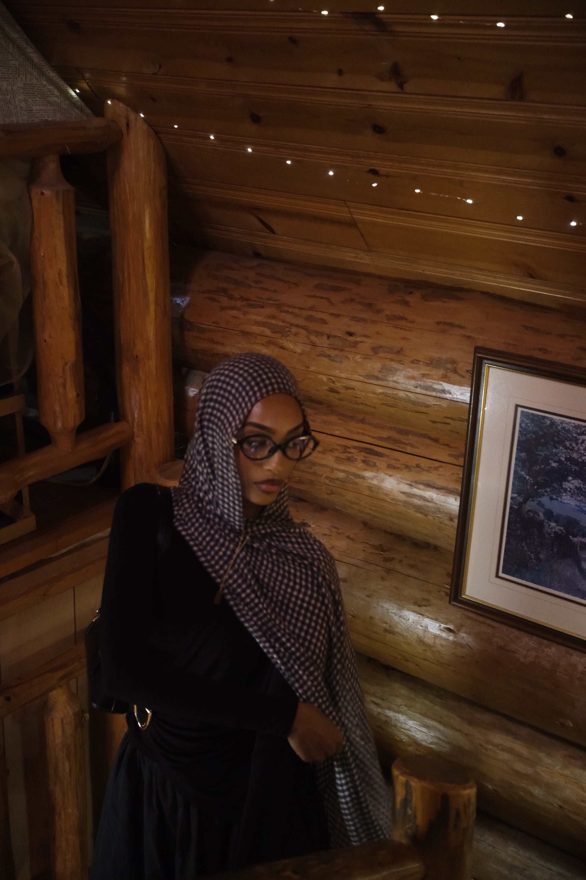A soft modal hijab in timeless black and cream — bold, balanced, and effortlessly chic.