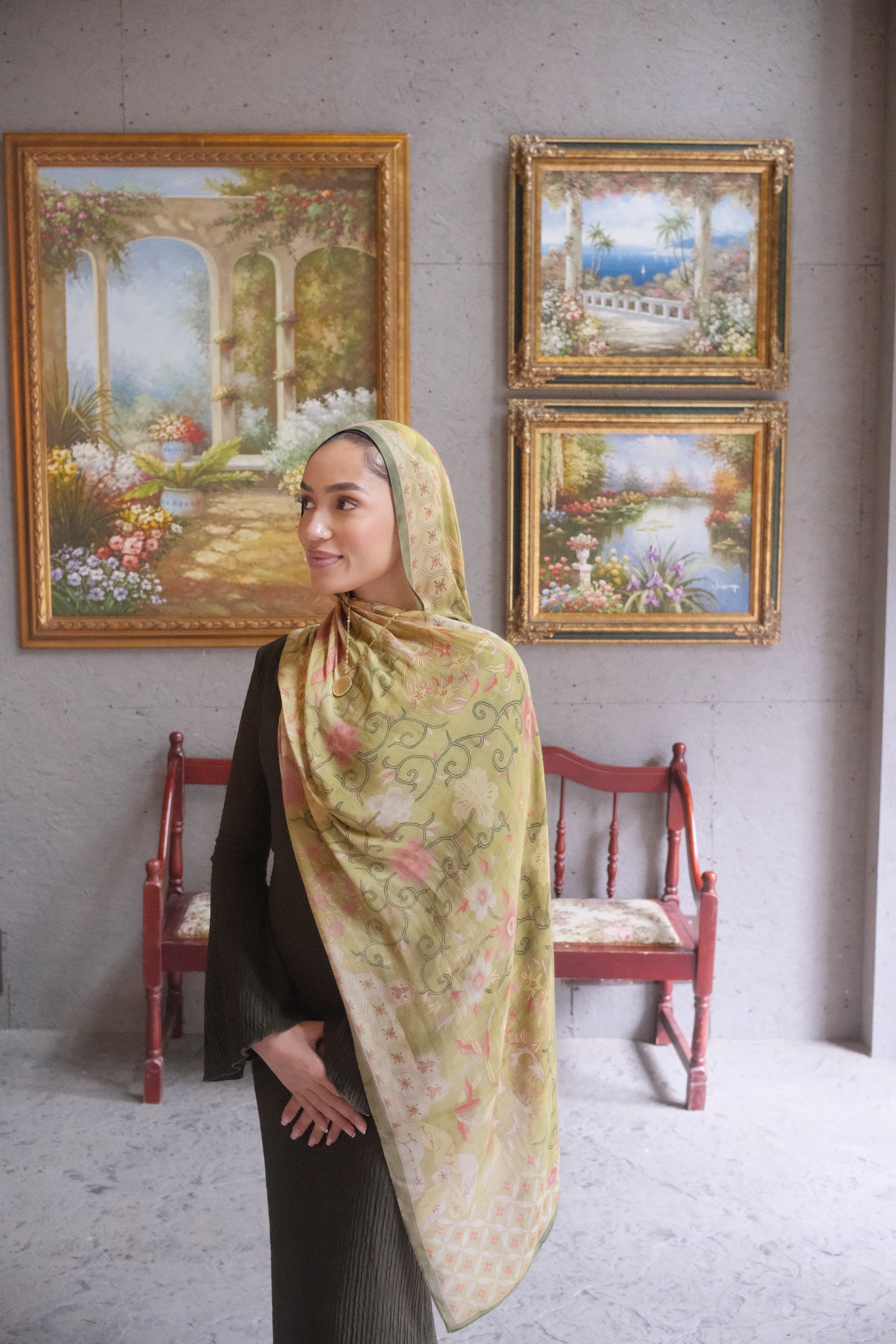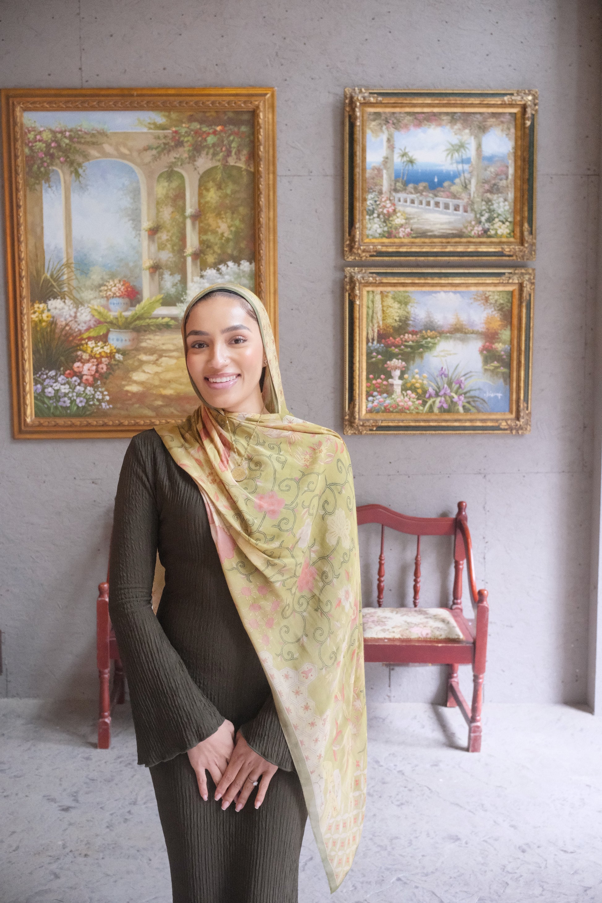 Inspired by the serene beauty of Japanese nature, the JADE GARDEN Hijab features soft, harmonious green tones for a calm and elegant look.