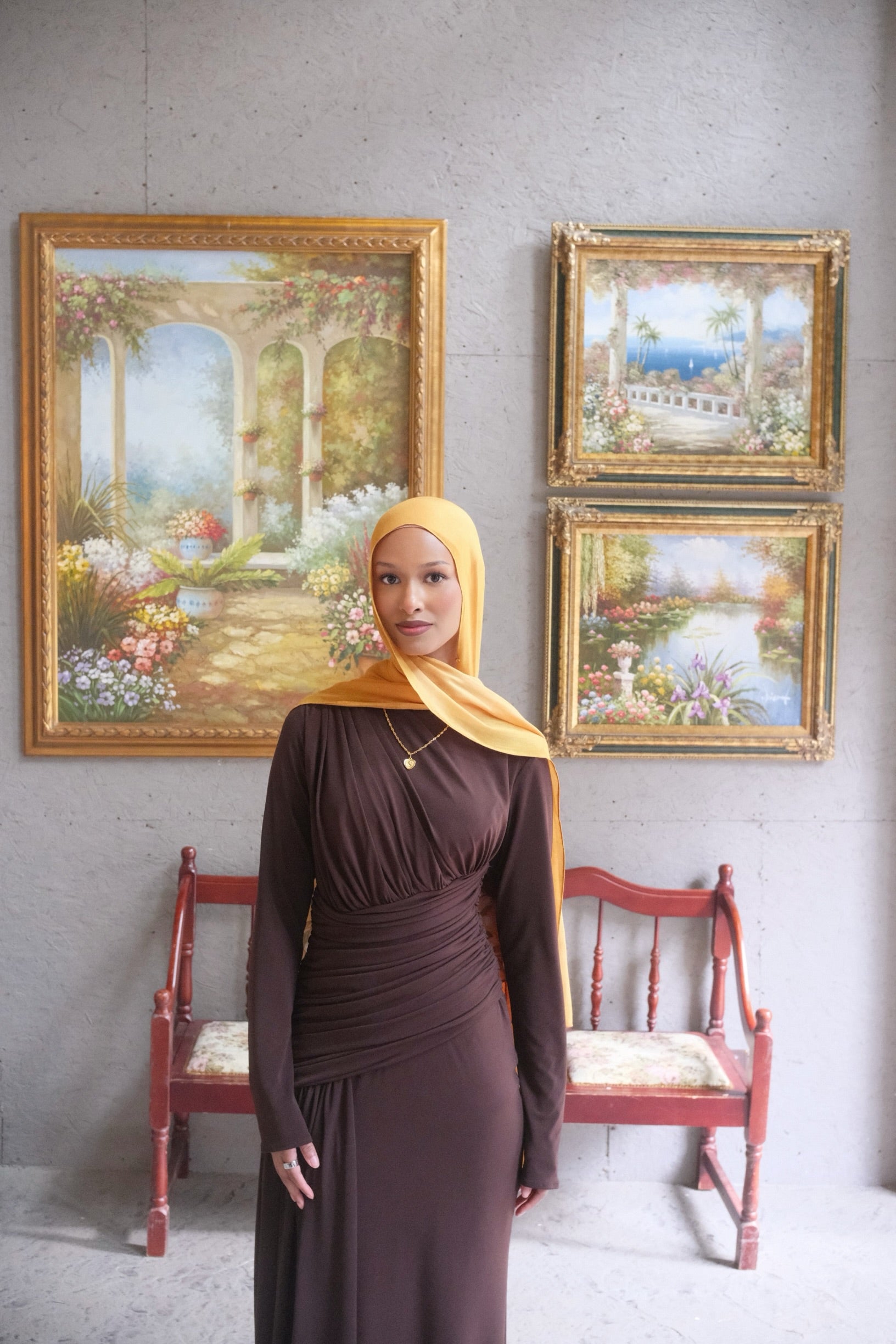 Inspired by the quiet beauty of Japanese mornings, the Morning Ceremony hijab is crafted from luxuriously soft modal fabric that drapes effortlessly and feels feather-light against the skin.